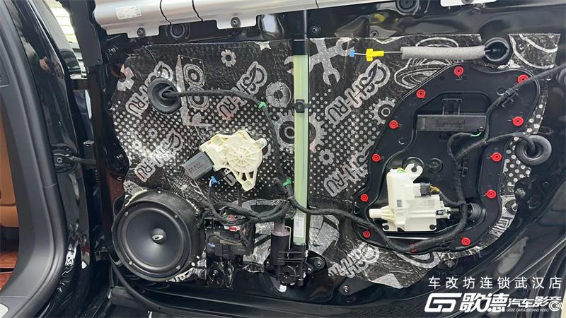 三分频喇叭直接原车位无损安装,门板采用STP CSH银卫盾做了双层隔音处理,打造箱体