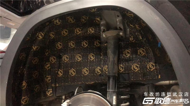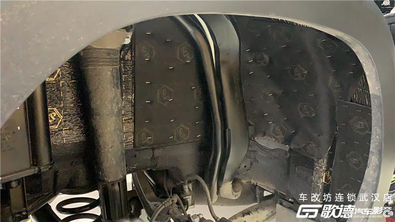 后轮毂是尾箱部分的重点部位,尾箱处的胎噪就是由此传入车内。改装师再添加一层NB3反弹棉,将噪音吸收干净,整个尾箱处的噪音就得到了很好的控制。