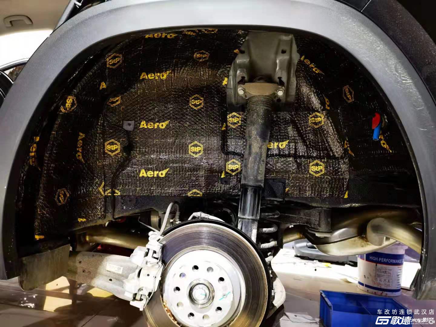 为了得到更安静的车内环境,改装师还针对胎噪的主要来源翼子板处也进行了隔音升级。依然使用了俄罗斯STP 航空炸弹,航空AC06棉和NB3反弹棉三种材料。止振阻隔吸音,层层过滤,从源头处解决了汽车胎噪。