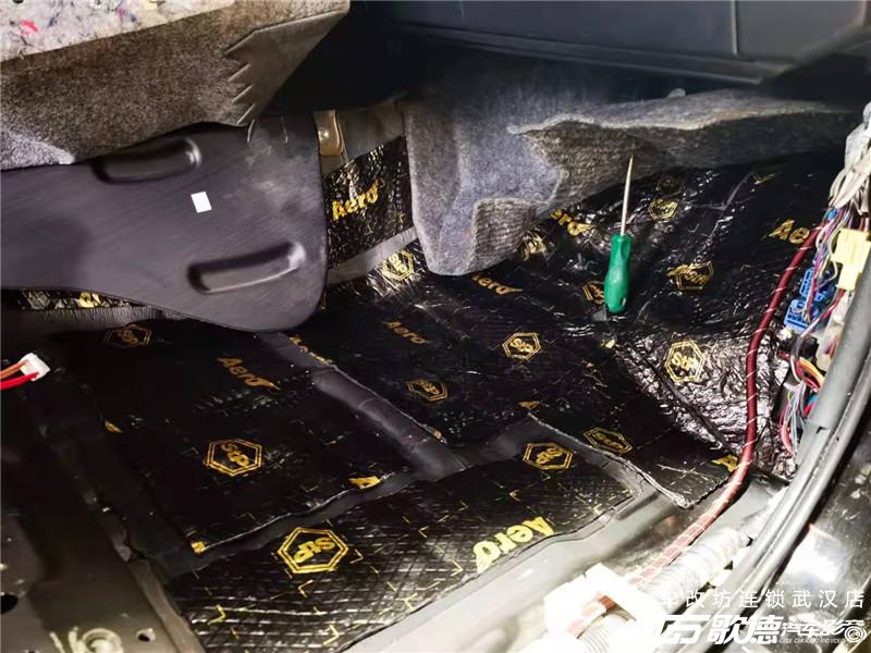 三层在使用一层NB3反弹棉安装在底盘,前脚踏和后尾箱。超广的吸收频段能将残余的噪音尽可能的吸收干净。至此整个底盘的低频噪音得到了很好的改善。