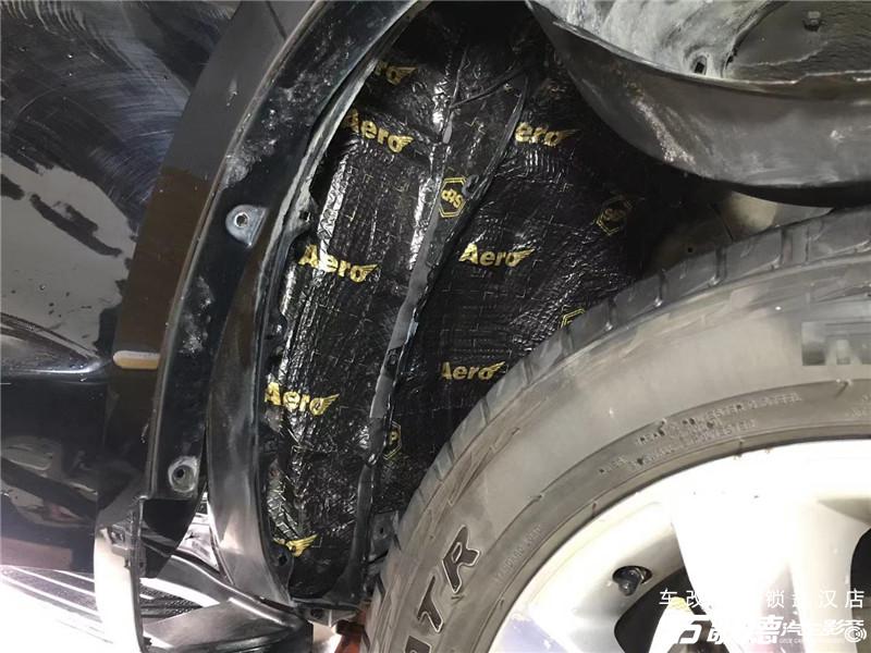 翼子板的胎噪声也是车内低频噪音的罪魁祸首之一,改装师使用STP航空炸弹做一层的止振。减少翼子板的共振,降低噪音。