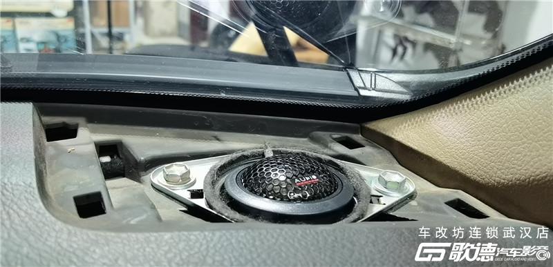 前声场喇叭升级的是一套德国乐斯登M165两分频,这套喇叭音质清晰、声色柔和细腻,中低音结实有力,车主试听后非常喜欢。