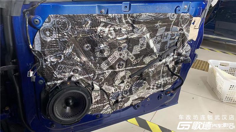 中低音单元原车位无损安装在门板上,门板使用俄罗斯STP 银卫盾做好双层隔音处理: