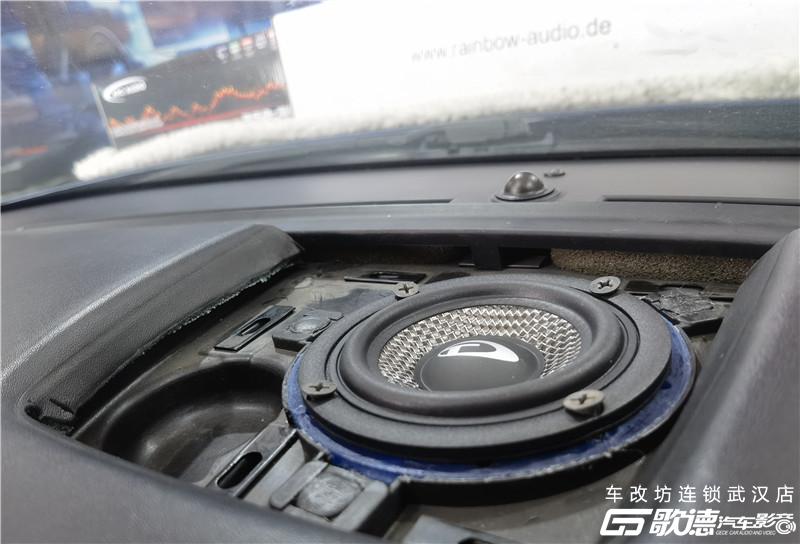 在车主多次试听对比后,车主选择了我们这套德国彩虹SL-Pro两分频作为前声场喇叭。这套喇叭的做工严谨、科技含量丰富,特别是螺旋分布在振膜上的凹点设计,有助于降低失真,更好的还原音乐原声。丝膜的高音单元能更好还原声音的细节,高频明亮通透。