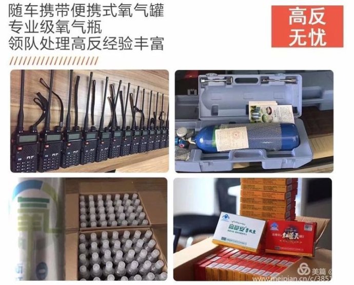 6、增值服务:团队车贴;手持电台(返程回收)、车用应急包,备用医用氧气瓶